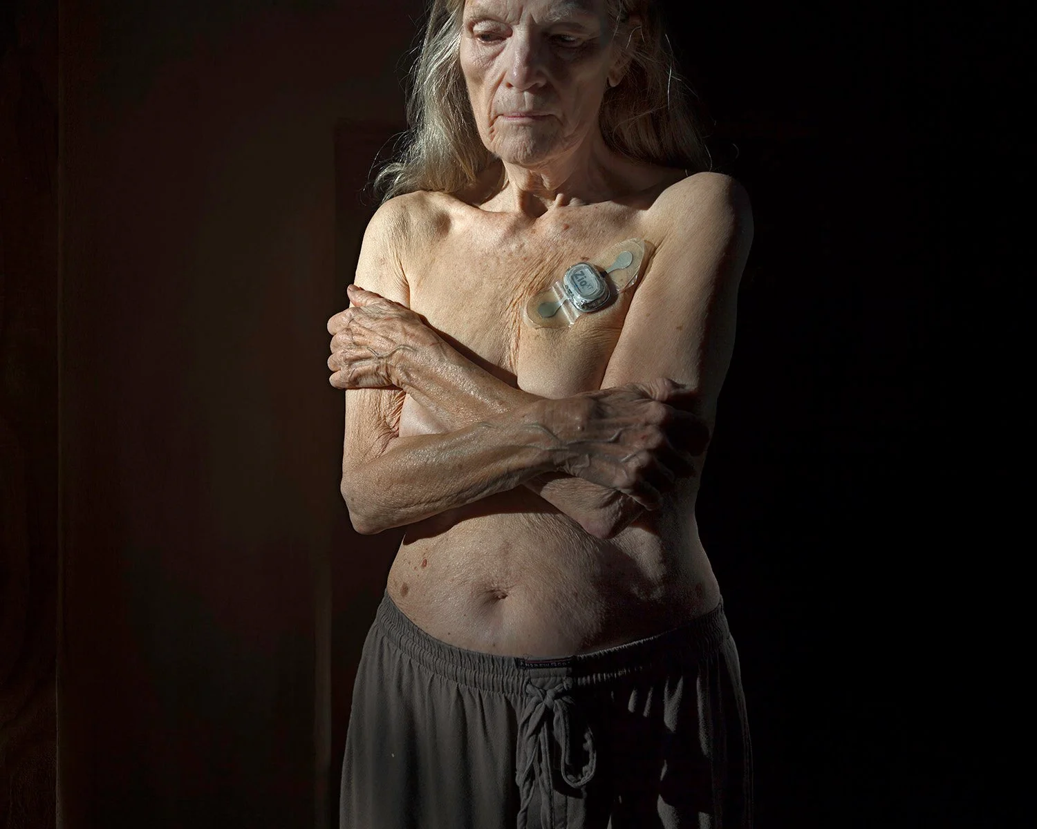 Marna Clarke was born in 1940 in Louisiana, went to university in North Carolina, majored in mathematics, worked for IBM for six years, moved to Washington, DC, New York City, Connecticut, and then California where she has lived outside San Francisco since 1996. Along the way she married, had two sons, divorced, and studied photography at various institutions. Since 2010, she had been photographing herself and her partner, Igor Sazevich, as they navigated getting older. He died in 2022. Marna continues to photograph herself, alone.